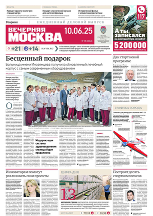 «Вечерняя Москва» — ежедневная российская вечерняя газета, старейшее из вечерних изданий в России, учрежденное в 1923 году. Выходит пять дней в неделю, кроме субботы и воскресенья. Отличается тем, что рассказывает о событиях еще не завершившегося дня. Оперативно освещает хронику и особенности жизни Москвы, охватывает все слои общества и большинство профессиональных и возрастных групп читателей.Издание представлено тремя выпусками – утренним ежедневным, вечерним (выходит три раза в неделю), еженедельным (выходит по четвергам).