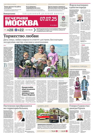«Вечерняя Москва» — ежедневная российская вечерняя газета, старейшее из вечерних изданий в России, учрежденное в 1923 году. Выходит пять дней в неделю, кроме субботы и воскресенья. Отличается тем, что рассказывает о событиях еще не завершившегося дня. Оперативно освещает хронику и особенности жизни Москвы, охватывает все слои общества и большинство профессиональных и возрастных групп читателей.Издание представлено тремя выпусками – утренним ежедневным, вечерним (выходит три раза в неделю), еженедельным (выходит по четвергам).