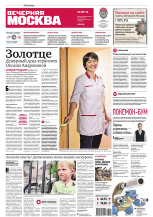«Вечерняя Москва» — ежедневная российская вечерняя газета, старейшее из вечерних изданий в России, учрежденное в 1923 году. Выходит пять дней в неделю, кроме субботы и воскресенья. Отличается тем, что рассказывает о событиях еще не завершившегося дня. Оперативно освещает хронику и особенности жизни Москвы, охватывает все слои общества и большинство профессиональных и возрастных групп читателей.Издание представлено тремя выпусками – утренним ежедневным, вечерним (выходит три раза в неделю), еженедельным (выходит по четвергам).