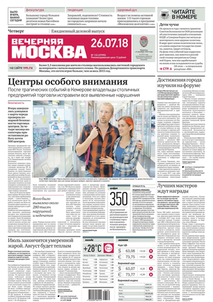 «Вечерняя Москва» — ежедневная российская вечерняя газета, старейшее из вечерних изданий в России, учрежденное в 1923 году. Выходит пять дней в неделю, кроме субботы и воскресенья. Отличается тем, что рассказывает о событиях еще не завершившегося дня. Оперативно освещает хронику и особенности жизни Москвы, охватывает все слои общества и большинство профессиональных и возрастных групп читателей.Издание представлено тремя выпусками – утренним ежедневным, вечерним (выходит три раза в неделю), еженедельным (выходит по четвергам).