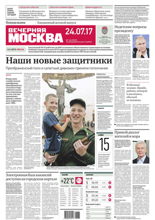 «Вечерняя Москва» — ежедневная российская вечерняя газета, старейшее из вечерних изданий в России, учрежденное в 1923 году. Выходит пять дней в неделю, кроме субботы и воскресенья. Отличается тем, что рассказывает о событиях еще не завершившегося дня. Оперативно освещает хронику и особенности жизни Москвы, охватывает все слои общества и большинство профессиональных и возрастных групп читателей.Издание представлено тремя выпусками – утренним ежедневным, вечерним (выходит три раза в неделю), еженедельным (выходит по четвергам).