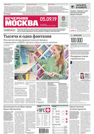 «Вечерняя Москва» — ежедневная российская вечерняя газета, старейшее из вечерних изданий в России, учрежденное в 1923 году. Выходит пять дней в неделю, кроме субботы и воскресенья. Отличается тем, что рассказывает о событиях еще не завершившегося дня. Оперативно освещает хронику и особенности жизни Москвы, охватывает все слои общества и большинство профессиональных и возрастных групп читателей.Издание представлено тремя выпусками – утренним ежедневным, вечерним (выходит три раза в неделю), еженедельным (выходит по четвергам).
