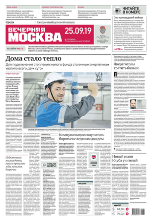 «Вечерняя Москва» — ежедневная российская вечерняя газета, старейшее из вечерних изданий в России, учрежденное в 1923 году. Выходит пять дней в неделю, кроме субботы и воскресенья. Отличается тем, что рассказывает о событиях еще не завершившегося дня. Оперативно освещает хронику и особенности жизни Москвы, охватывает все слои общества и большинство профессиональных и возрастных групп читателей.Издание представлено тремя выпусками – утренним ежедневным, вечерним (выходит три раза в неделю), еженедельным (выходит по четвергам).