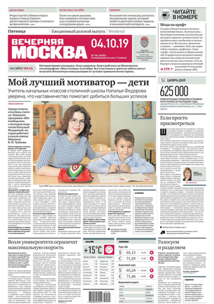 «Вечерняя Москва» — ежедневная российская вечерняя газета, старейшее из вечерних изданий в России, учрежденное в 1923 году. Выходит пять дней в неделю, кроме субботы и воскресенья. Отличается тем, что рассказывает о событиях еще не завершившегося дня. Оперативно освещает хронику и особенности жизни Москвы, охватывает все слои общества и большинство профессиональных и возрастных групп читателей.Издание представлено тремя выпусками – утренним ежедневным, вечерним (выходит три раза в неделю), еженедельным (выходит по четвергам).