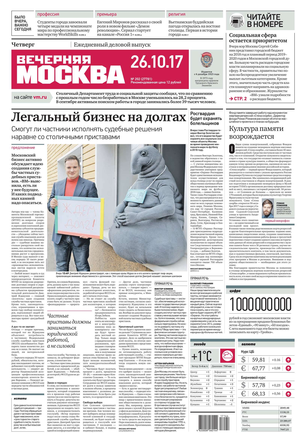 «Вечерняя Москва» — ежедневная российская вечерняя газета, старейшее из вечерних изданий в России, учрежденное в 1923 году. Выходит пять дней в неделю, кроме субботы и воскресенья. Отличается тем, что рассказывает о событиях еще не завершившегося дня. Оперативно освещает хронику и особенности жизни Москвы, охватывает все слои общества и большинство профессиональных и возрастных групп читателей.Издание представлено тремя выпусками – утренним ежедневным, вечерним (выходит три раза в неделю), еженедельным (выходит по четвергам).