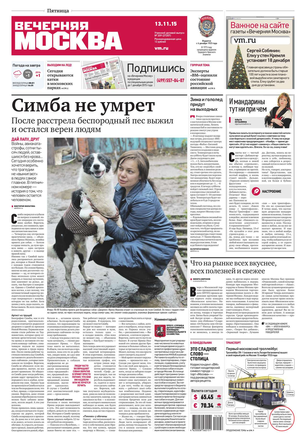 «Вечерняя Москва» — ежедневная российская вечерняя газета, старейшее из вечерних изданий в России, учрежденное в 1923 году. Выходит пять дней в неделю, кроме субботы и воскресенья. Отличается тем, что рассказывает о событиях еще не завершившегося дня. Оперативно освещает хронику и особенности жизни Москвы, охватывает все слои общества и большинство профессиональных и возрастных групп читателей.Издание представлено тремя выпусками – утренним ежедневным, вечерним (выходит три раза в неделю), еженедельным (выходит по четвергам).