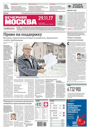 «Вечерняя Москва» — ежедневная российская вечерняя газета, старейшее из вечерних изданий в России, учрежденное в 1923 году. Выходит пять дней в неделю, кроме субботы и воскресенья. Отличается тем, что рассказывает о событиях еще не завершившегося дня. Оперативно освещает хронику и особенности жизни Москвы, охватывает все слои общества и большинство профессиональных и возрастных групп читателей.Издание представлено тремя выпусками – утренним ежедневным, вечерним (выходит три раза в неделю), еженедельным (выходит по четвергам).