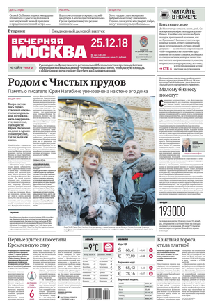 «Вечерняя Москва» — ежедневная российская вечерняя газета, старейшее из вечерних изданий в России, учрежденное в 1923 году. Выходит пять дней в неделю, кроме субботы и воскресенья. Отличается тем, что рассказывает о событиях еще не завершившегося дня. Оперативно освещает хронику и особенности жизни Москвы, охватывает все слои общества и большинство профессиональных и возрастных групп читателей.Издание представлено тремя выпусками – утренним ежедневным, вечерним (выходит три раза в неделю), еженедельным (выходит по четвергам).