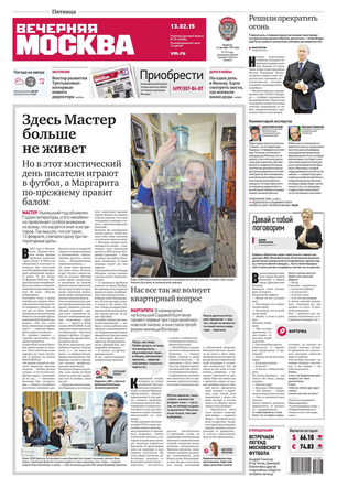 «Вечерняя Москва» — ежедневная российская вечерняя газета, старейшее из вечерних изданий в России, учрежденное в 1923 году. Выходит пять дней в неделю, кроме субботы и воскресенья. Отличается тем, что рассказывает о событиях еще не завершившегося дня. Оперативно освещает хронику и особенности жизни Москвы, охватывает все слои общества и большинство профессиональных и возрастных групп читателей.Издание представлено тремя выпусками – утренним ежедневным, вечерним (выходит три раза в неделю), еженедельным (выходит по четвергам).