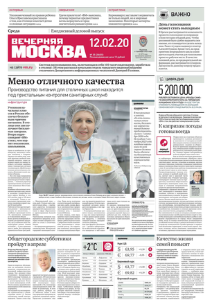 «Вечерняя Москва» — ежедневная российская вечерняя газета, старейшее из вечерних изданий в России, учрежденное в 1923 году. Выходит пять дней в неделю, кроме субботы и воскресенья. Отличается тем, что рассказывает о событиях еще не завершившегося дня. Оперативно освещает хронику и особенности жизни Москвы, охватывает все слои общества и большинство профессиональных и возрастных групп читателей.Издание представлено тремя выпусками – утренним ежедневным, вечерним (выходит три раза в неделю), еженедельным (выходит по четвергам).