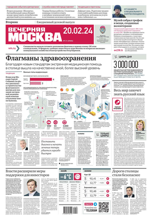«Вечерняя Москва» — ежедневная российская вечерняя газета, старейшее из вечерних изданий в России, учрежденное в 1923 году. Выходит пять дней в неделю, кроме субботы и воскресенья. Отличается тем, что рассказывает о событиях еще не завершившегося дня. Оперативно освещает хронику и особенности жизни Москвы, охватывает все слои общества и большинство профессиональных и возрастных групп читателей.Издание представлено тремя выпусками – утренним ежедневным, вечерним (выходит три раза в неделю), еженедельным (выходит по четвергам).
