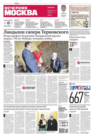 «Вечерняя Москва» — ежедневная российская вечерняя газета, старейшее из вечерних изданий в России, учрежденное в 1923 году. Выходит пять дней в неделю, кроме субботы и воскресенья. Отличается тем, что рассказывает о событиях еще не завершившегося дня. Оперативно освещает хронику и особенности жизни Москвы, охватывает все слои общества и большинство профессиональных и возрастных групп читателей.Издание представлено тремя выпусками – утренним ежедневным, вечерним (выходит три раза в неделю), еженедельным (выходит по четвергам).