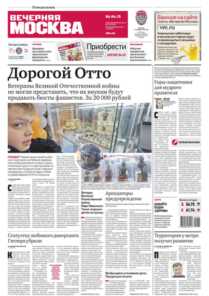 «Вечерняя Москва» — ежедневная российская вечерняя газета, старейшее из вечерних изданий в России, учрежденное в 1923 году. Выходит пять дней в неделю, кроме субботы и воскресенья. Отличается тем, что рассказывает о событиях еще не завершившегося дня. Оперативно освещает хронику и особенности жизни Москвы, охватывает все слои общества и большинство профессиональных и возрастных групп читателей.Издание представлено тремя выпусками – утренним ежедневным, вечерним (выходит три раза в неделю), еженедельным (выходит по четвергам).