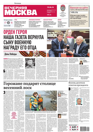 «Вечерняя Москва» — ежедневная российская вечерняя газета, старейшее из вечерних изданий в России, учрежденное в 1923 году. Выходит пять дней в неделю, кроме субботы и воскресенья. Отличается тем, что рассказывает о событиях еще не завершившегося дня. Оперативно освещает хронику и особенности жизни Москвы, охватывает все слои общества и большинство профессиональных и возрастных групп читателей.Издание представлено тремя выпусками – утренним ежедневным, вечерним (выходит три раза в неделю), еженедельным (выходит по четвергам).