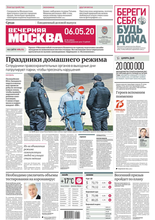 «Вечерняя Москва» — ежедневная российская вечерняя газета, старейшее из вечерних изданий в России, учрежденное в 1923 году. Выходит пять дней в неделю, кроме субботы и воскресенья. Отличается тем, что рассказывает о событиях еще не завершившегося дня. Оперативно освещает хронику и особенности жизни Москвы, охватывает все слои общества и большинство профессиональных и возрастных групп читателей.Издание представлено тремя выпусками – утренним ежедневным, вечерним (выходит три раза в неделю), еженедельным (выходит по четвергам).