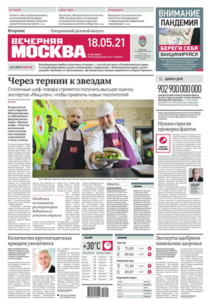 «Вечерняя Москва» — ежедневная российская вечерняя газета, старейшее из вечерних изданий в России, учрежденное в 1923 году. Выходит пять дней в неделю, кроме субботы и воскресенья. Отличается тем, что рассказывает о событиях еще не завершившегося дня. Оперативно освещает хронику и особенности жизни Москвы, охватывает все слои общества и большинство профессиональных и возрастных групп читателей.Издание представлено тремя выпусками – утренним ежедневным, вечерним (выходит три раза в неделю), еженедельным (выходит по четвергам).