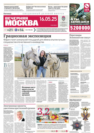 «Вечерняя Москва» — ежедневная российская вечерняя газета, старейшее из вечерних изданий в России, учрежденное в 1923 году. Выходит пять дней в неделю, кроме субботы и воскресенья. Отличается тем, что рассказывает о событиях еще не завершившегося дня. Оперативно освещает хронику и особенности жизни Москвы, охватывает все слои общества и большинство профессиональных и возрастных групп читателей.Издание представлено тремя выпусками – утренним ежедневным, вечерним (выходит три раза в неделю), еженедельным (выходит по четвергам).