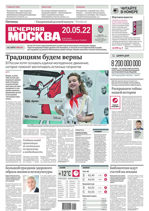 «Вечерняя Москва» — ежедневная российская вечерняя газета, старейшее из вечерних изданий в России, учрежденное в 1923 году. Выходит пять дней в неделю, кроме субботы и воскресенья. Отличается тем, что рассказывает о событиях еще не завершившегося дня. Оперативно освещает хронику и особенности жизни Москвы, охватывает все слои общества и большинство профессиональных и возрастных групп читателей.Издание представлено тремя выпусками – утренним ежедневным, вечерним (выходит три раза в неделю), еженедельным (выходит по четвергам).