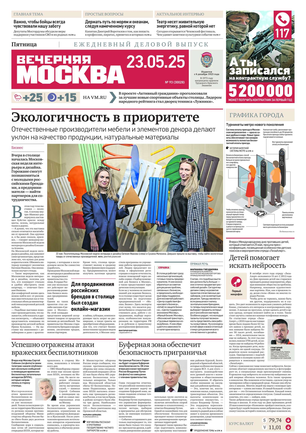 «Вечерняя Москва» — ежедневная российская вечерняя газета, старейшее из вечерних изданий в России, учрежденное в 1923 году. Выходит пять дней в неделю, кроме субботы и воскресенья. Отличается тем, что рассказывает о событиях еще не завершившегося дня. Оперативно освещает хронику и особенности жизни Москвы, охватывает все слои общества и большинство профессиональных и возрастных групп читателей.Издание представлено тремя выпусками – утренним ежедневным, вечерним (выходит три раза в неделю), еженедельным (выходит по четвергам).