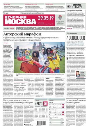 «Вечерняя Москва» — ежедневная российская вечерняя газета, старейшее из вечерних изданий в России, учрежденное в 1923 году. Выходит пять дней в неделю, кроме субботы и воскресенья. Отличается тем, что рассказывает о событиях еще не завершившегося дня. Оперативно освещает хронику и особенности жизни Москвы, охватывает все слои общества и большинство профессиональных и возрастных групп читателей.Издание представлено тремя выпусками – утренним ежедневным, вечерним (выходит три раза в неделю), еженедельным (выходит по четвергам).