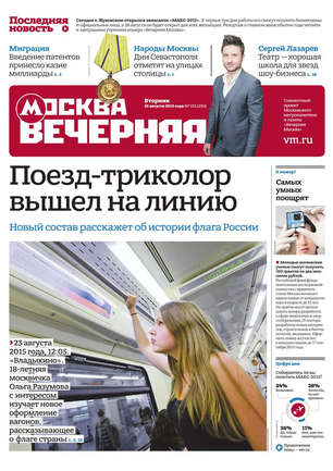 «Вечерняя Москва» — ежедневная российская вечерняя газета, старейшее из вечерних изданий в России, учрежденное в 1923 году. Выходит пять дней в неделю, кроме субботы и воскресенья. Отличается тем, что рассказывает о событиях еще не завершившегося дня. Оперативно освещает хронику и особенности жизни Москвы, охватывает все слои общества и большинство профессиональных и возрастных групп читателей.Издание представлено тремя выпусками – утренним ежедневным, вечерним (выходит три раза в неделю), еженедельным (выходит по четвергам).