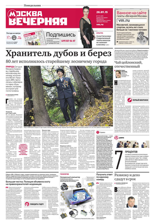 «Вечерняя Москва» — ежедневная российская вечерняя газета, старейшее из вечерних изданий в России, учрежденное в 1923 году. Выходит пять дней в неделю, кроме субботы и воскресенья. Отличается тем, что рассказывает о событиях еще не завершившегося дня. Оперативно освещает хронику и особенности жизни Москвы, охватывает все слои общества и большинство профессиональных и возрастных групп читателей.Издание представлено тремя выпусками – утренним ежедневным, вечерним (выходит три раза в неделю), еженедельным (выходит по четвергам).