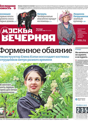 «Вечерняя Москва» — ежедневная российская вечерняя газета, старейшее из вечерних изданий в России, учрежденное в 1923 году. Выходит пять дней в неделю, кроме субботы и воскресенья. Отличается тем, что рассказывает о событиях еще не завершившегося дня. Оперативно освещает хронику и особенности жизни Москвы, охватывает все слои общества и большинство профессиональных и возрастных групп читателей.Издание представлено тремя выпусками – утренним ежедневным, вечерним (выходит три раза в неделю), еженедельным (выходит по четвергам).