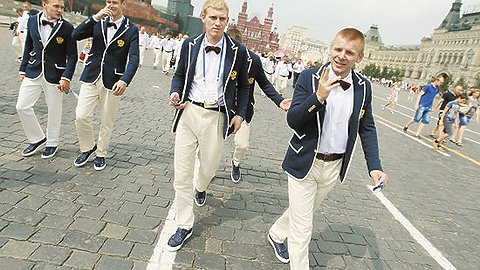 Второй день в соцсетях высмеивают парадную форму нашей олимпийской сборной. С кем только не сравнивают российских спортсменов: и с гардеробщиками, и с лакеями, и со швейцарами. Одним синие пиджаки с белой окантовкой по краям ворота и галстуки-бабочки напомнили костюмчик куплетиста Бубы Касторского из фильмов про неуловимых мстителей, другие говорят, что образ содрали у украинской сборной образца 2008 года.