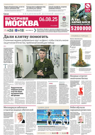«Вечерняя Москва» — ежедневная российская вечерняя газета, старейшее из вечерних изданий в России, учрежденное в 1923 году. Выходит пять дней в неделю, кроме субботы и воскресенья. Отличается тем, что рассказывает о событиях еще не завершившегося дня. Оперативно освещает хронику и особенности жизни Москвы, охватывает все слои общества и большинство профессиональных и возрастных групп читателей.Издание представлено тремя выпусками – утренним ежедневным, вечерним (выходит три раза в неделю), еженедельным (выходит по четвергам).