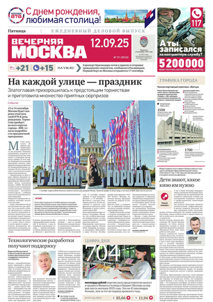 «Вечерняя Москва» — ежедневная российская вечерняя газета, старейшее из вечерних изданий в России, учрежденное в 1923 году. Выходит пять дней в неделю, кроме субботы и воскресенья. Отличается тем, что рассказывает о событиях еще не завершившегося дня. Оперативно освещает хронику и особенности жизни Москвы, охватывает все слои общества и большинство профессиональных и возрастных групп читателей.Издание представлено тремя выпусками – утренним ежедневным, вечерним (выходит три раза в неделю), еженедельным (выходит по четвергам).