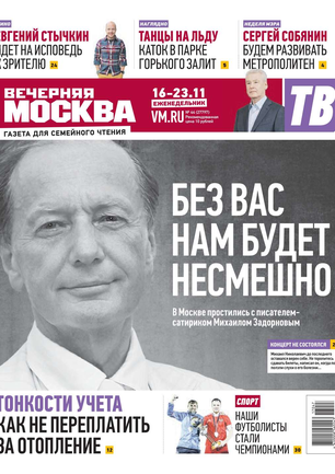 Еженедельный выпуск «Вечерней Москвы» — это значимые события недели, афиша города, новости из сферы отдыха и развлечений, телепрограмма с анонсами и комментариями, авторские колонки журналистов и авторитетные мнения экспертов, детская страничка, специальная рубрика «Золушка», интересные репортажи о необычных судьбах московских жителей, постоянные конкурсы и викторины.